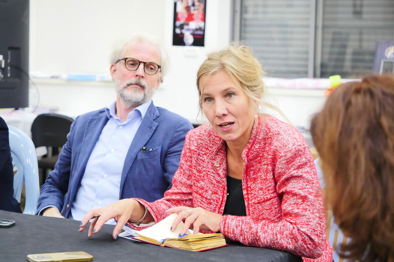 وضمّ الوفد سعادة السُفراء : نيكولاس لوتريتي (النمسا)؛ الكسندرا رايدمارك (السويد) ؛ سلافنا جرجوفا (بلغاريا)؛ كورنيليوس كورنيليو (قبرص)، إضافةً إلى مبعوث بريطانيّ ووفدٍ مرافق، في حين شارك في اللّقاء طاقمٌ من المُتطوّعين في المركز.